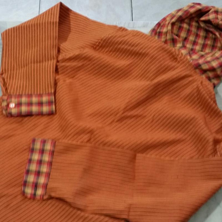 . سایز 60 ( فاصله بین زیر بغل ها 35 تا 36 سانت و فاصله مستقیم بین شانه ها 33 سانت و قد پیراهن 51 سانت و قد آستین 40.5 تا 41 سانت و عرض شکم 33 سانت ).