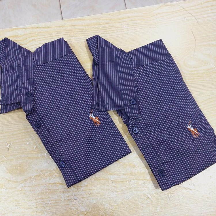 پیراهن مردانه راه راه طرح پلو در رنگ بنفش کم رنگ باخطوطوعمودی سفیددرسایزL. XL. 2XL. 3XL