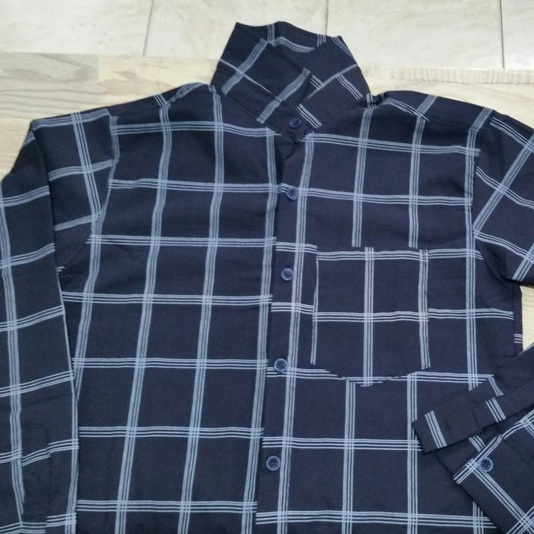 پیراهن مردانه چهار خانه سرمه ای سایز مدیوم
