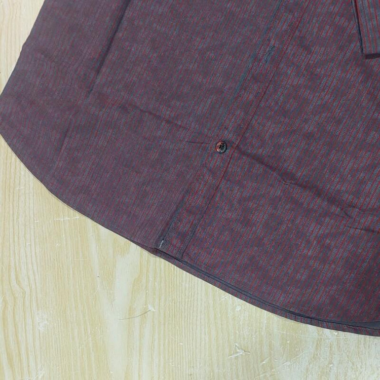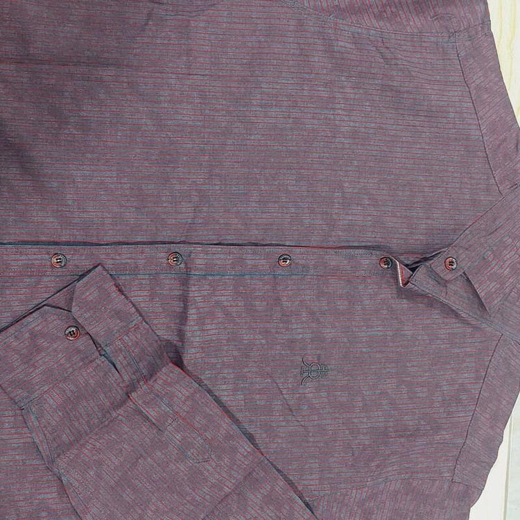 پیراهن مردانه را ه راه با زمینه رنگ خاکستری و با خطوط عمودی قرمز، تولید شده در تولیدی های داخلی استاندارد و معتبر داخلی.