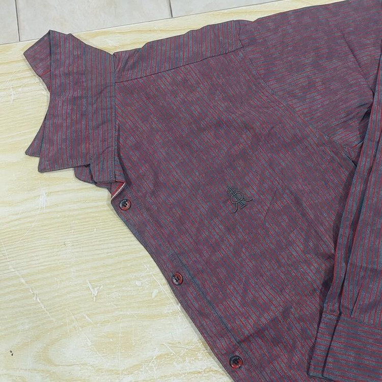 پیراهن مردانه زمینه خاکستری با راه راه قرمزسایزLxl3xl