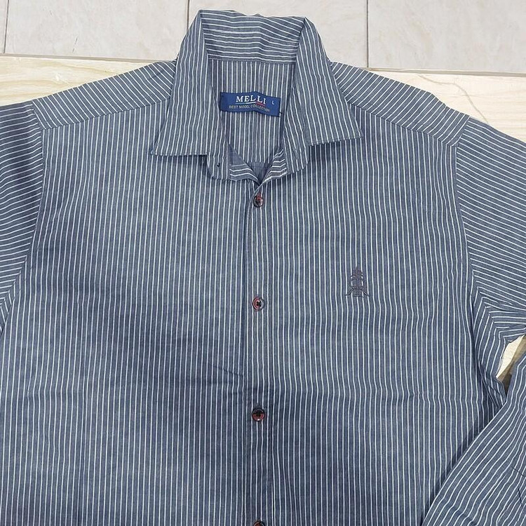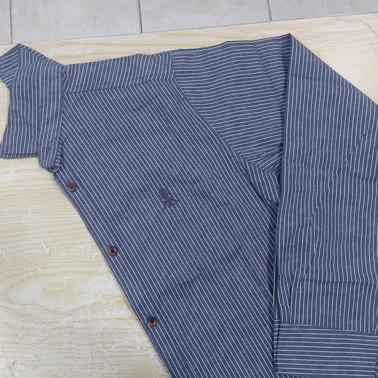 پیراهن مردانه خاکستری نیمه روشن راه راه باخطوط سفیدسایزL