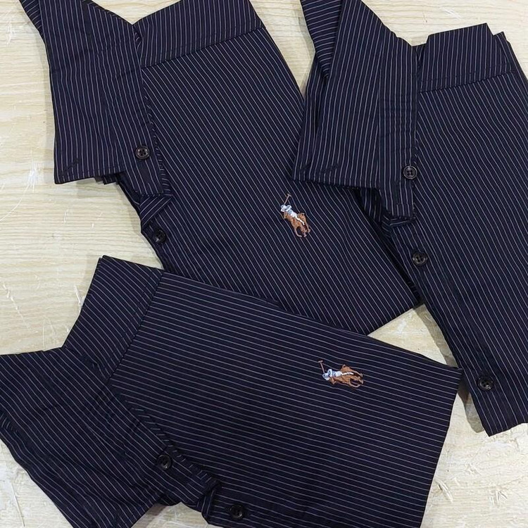 پیراهن مردانه راه راه طرح پلو در رنگ مشکی با خطوط بنفش تا یاسی در سایز های L,XL,2XL,3XL تولید شده در تولیدی های داخلی استاندارد و معتبر داخلی.