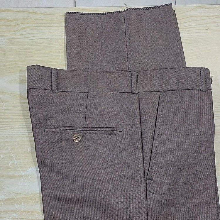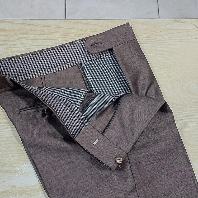 شلوار پارچه ای مردانه رنگ قهوه ای روشن نیمه براق سایز ۳۸ تا ۴۰، تولید شده در تولیدی های داخلی استاندارد