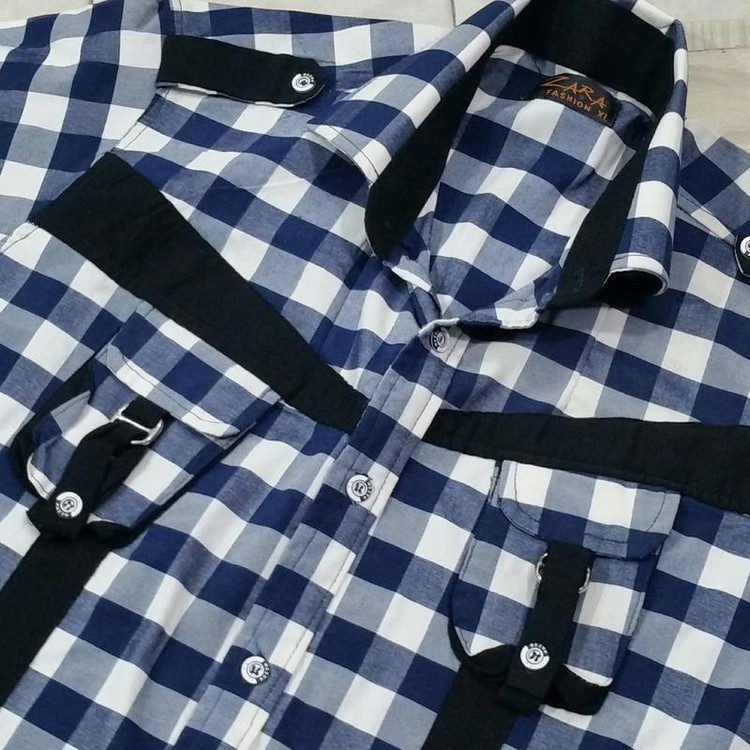 تیشرت مردانه چهارخانه کتان در دو رنگ خاص کد 03