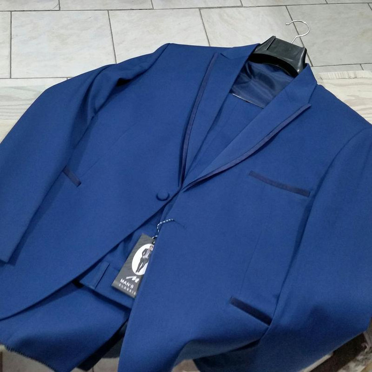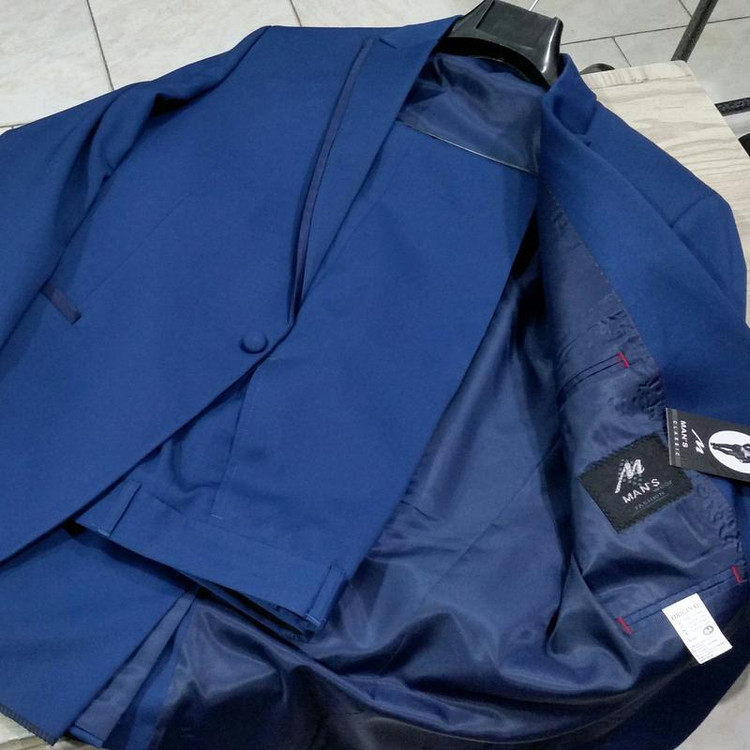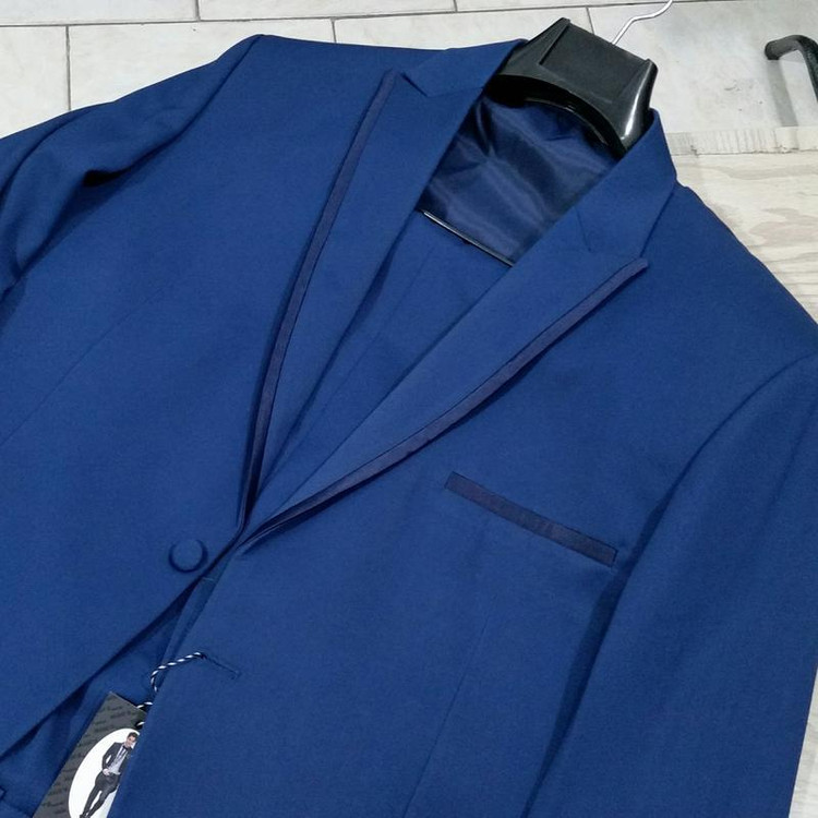 کت و شلوار مجلسی خوش رنگ آبی کاربنی سایز 54 دراپ 6، تولید شده در تولیدی های معتبر داخلی با پارچه با کیفیت.