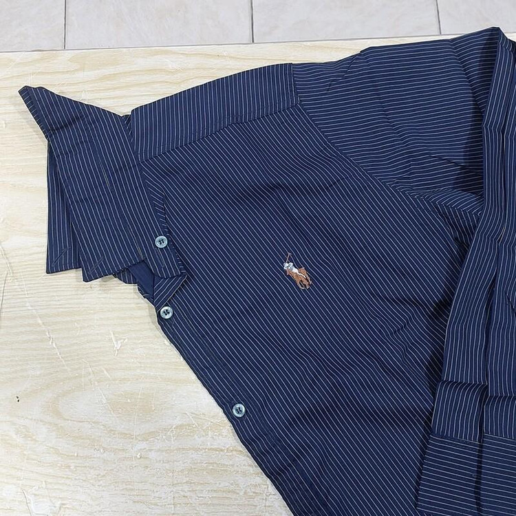پیراهن مردانه سرمه ای راه راه باخطوط سبز در سایز2xl