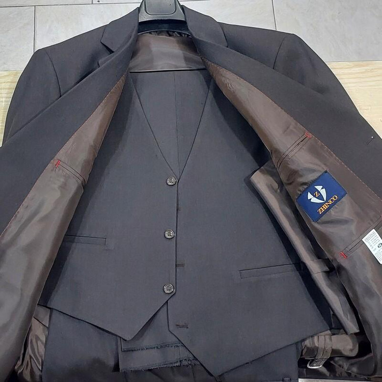 کت وشلوار مردانه جلیقه دار رنگ قهوه ای مدل رسمی سایز46تا56