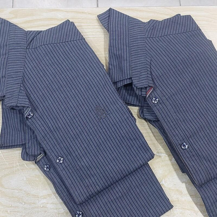 پیراهن مردانه خاکستری راه راه باخطوط عمودی سرمه ای در سایزهای L. XL. 2XL. 3XL