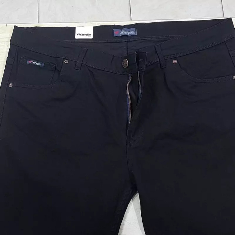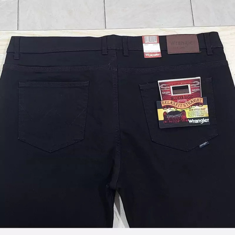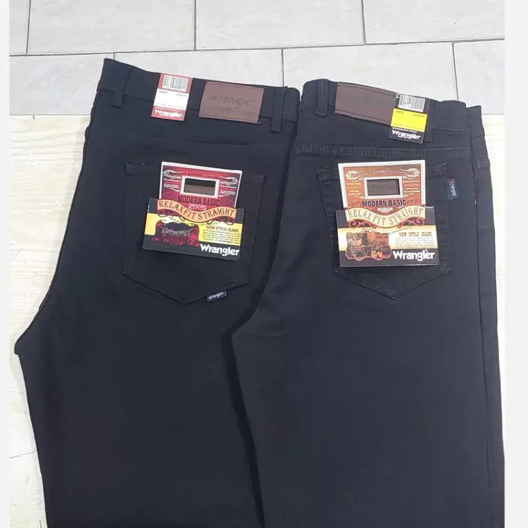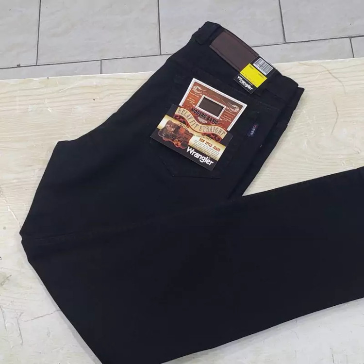 شلوار لی راسته و فاق بلند مشکی مردانه ، در سایز های ایرانی 44 و 46 و 48 و 50 و 52 و 54 و 56 و 58 و 60، تولید شده در تولیدی های داخلی استاندارد.