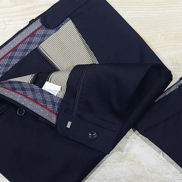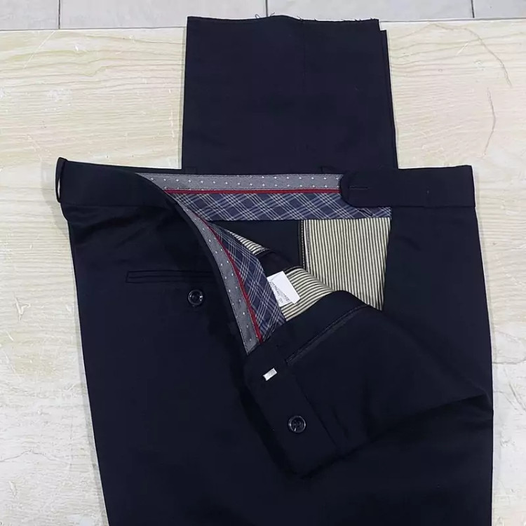 شلوار پارچه ای سرمه ای مردانه، در سایز های 42 و 44 و 46 و 48و 50و 52، تولید شده در تولیدی های داخلی استاندارد و معتبر کشور.