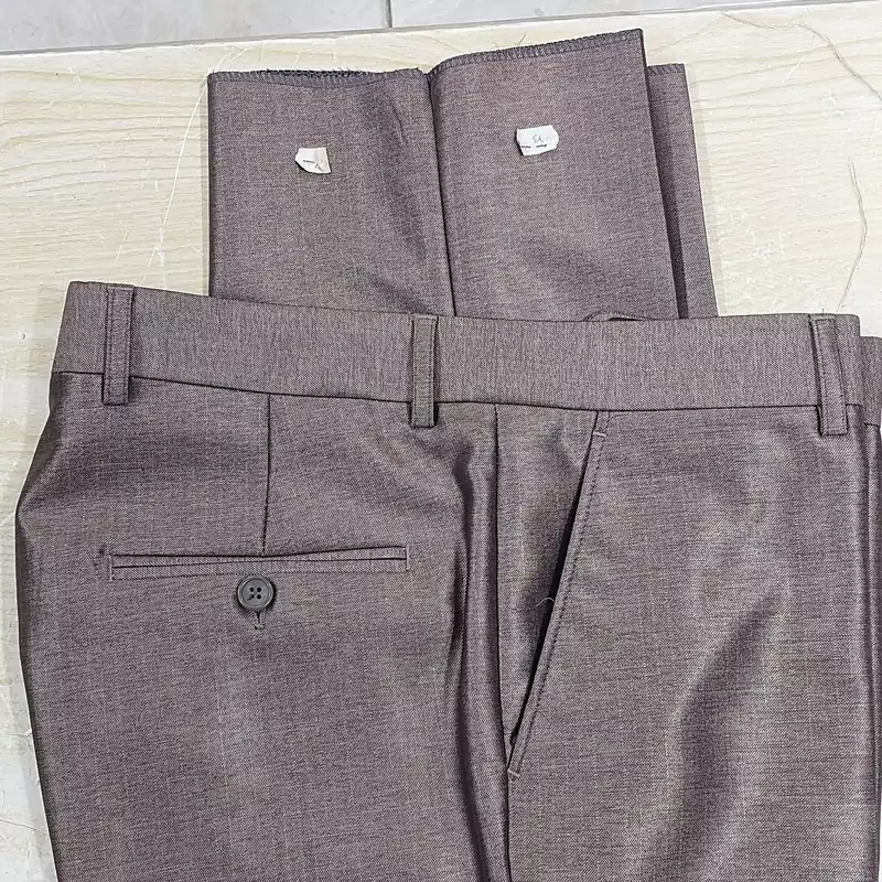 شلوار پارچه ای مردانه رنگ قهوه ای نیمه براق، تولید شده در تولیدی های داخلی استاندارد، مناسب آقایان خوش پوش، سایز 44 ایرانی