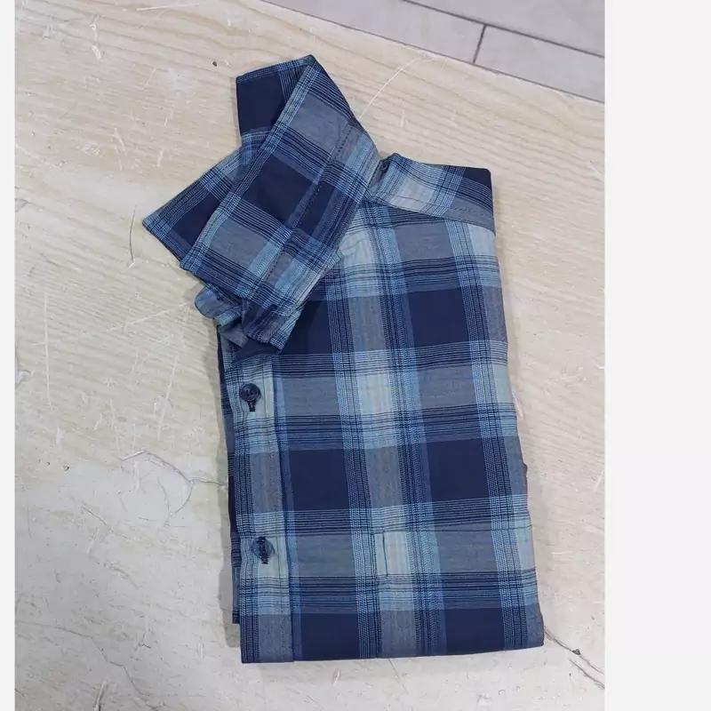 پیراهن مردانه چهارخانه آبی و سرمه ای