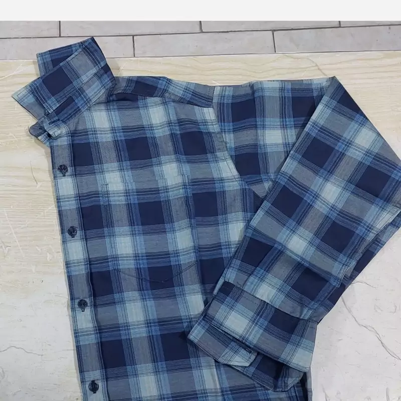 پیراهن مردانه چهارخانه آبی و سرمه ای