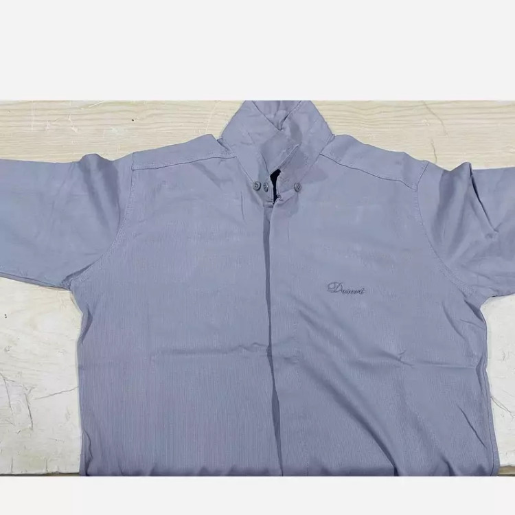 پیراهن مردانه رنگ آبی آسمانی دکمه مخفی و کشی ، با حالت میله ای در سایز های لارج و ایکس لارج و دو ایکس لارج ، تولید شده در تولیدی های داخلی معتبر، مناسب آقایان خوش پوش.