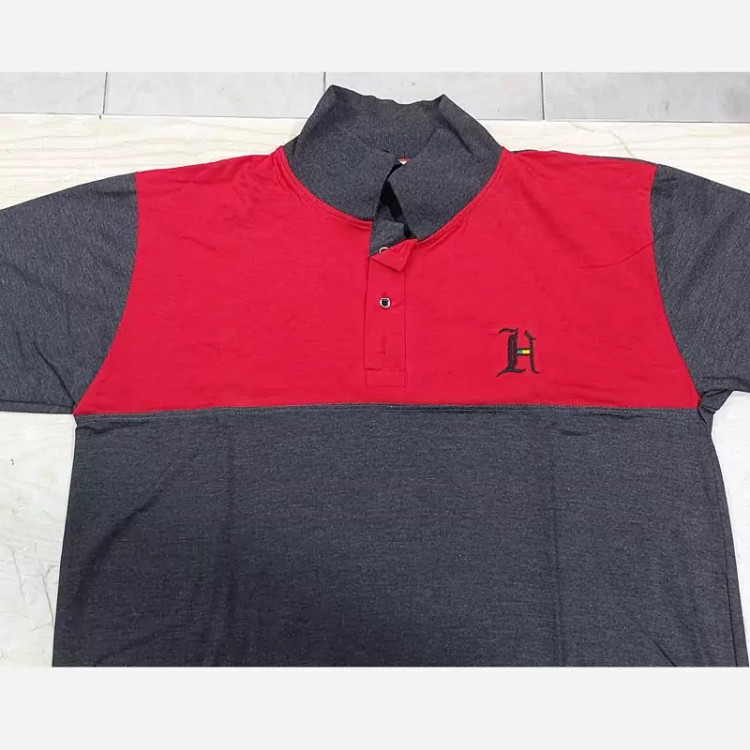تیشرت مردانه آستین کوتاه قرمز و ذغالی