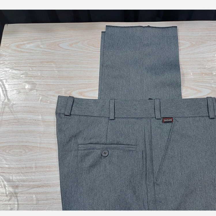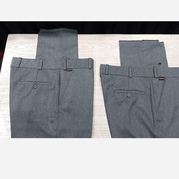 شلوار پارچه ای مردانه ایرانی، با دوخت عالی و رنگ بسیار خاص طوسی با مقدار خیلی کمی ته رنگ سبز، تولید شده در تولیدی های داخلی استاندارد و معتبر کشور، مناسب آقایان خوش پوش.