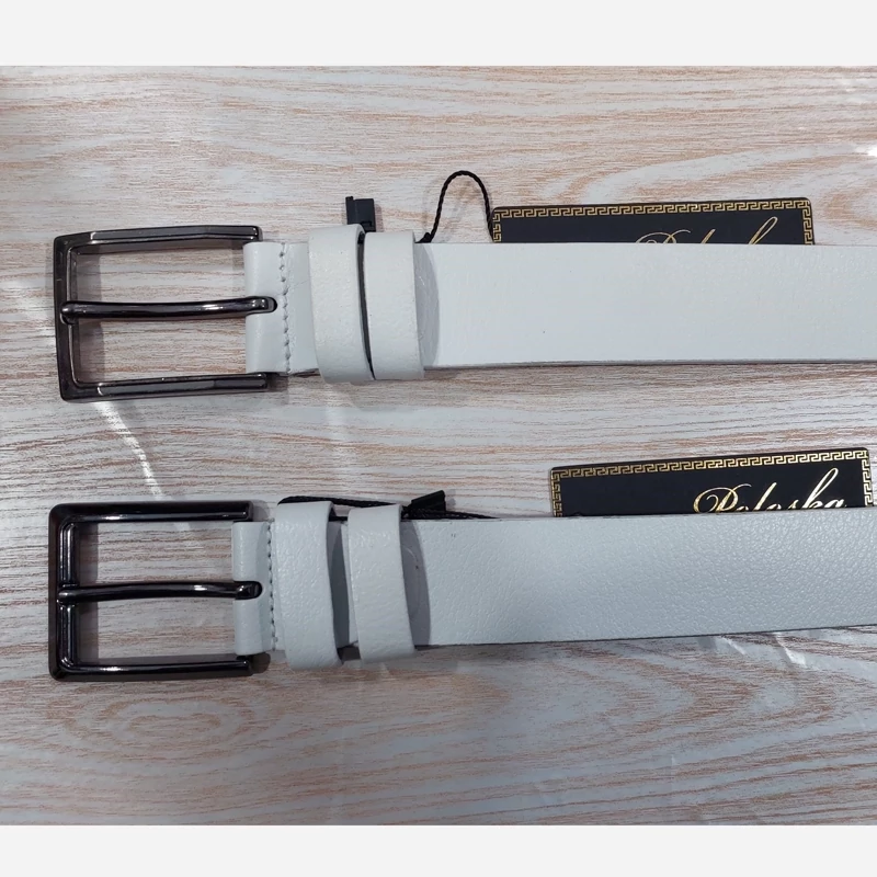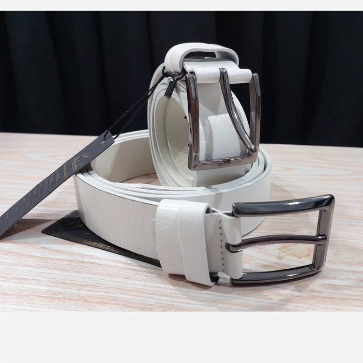 کمربند چرم طبیعی در رنگ خاص سفید با عرض 3 سانتی و طول 130 سانتی ، و طول با احتساب سگک 136 سانت ، تولید شده در تولیدی های استاندارد و معتبر.