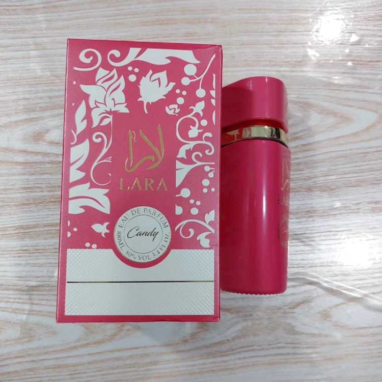 ادکلن وارداتی لارا صورتی با حجم 100 میل ، با بسته بندی زیبا ، و رایحه شیرین و دلچسب، مناسب افراد خوش سلیقه، وارداتی کشور هندوستان.