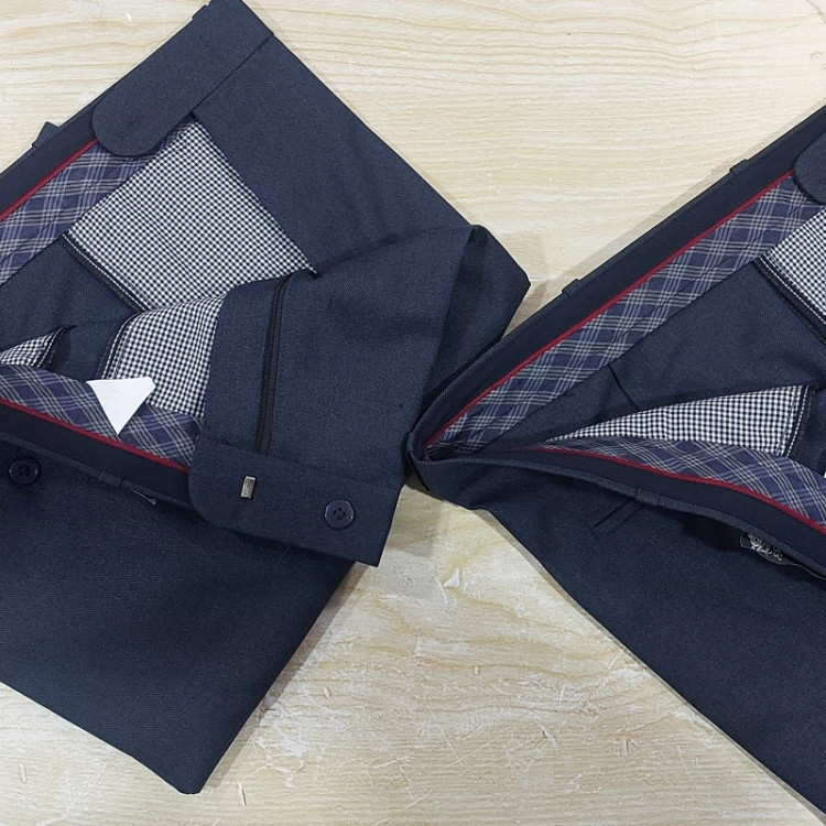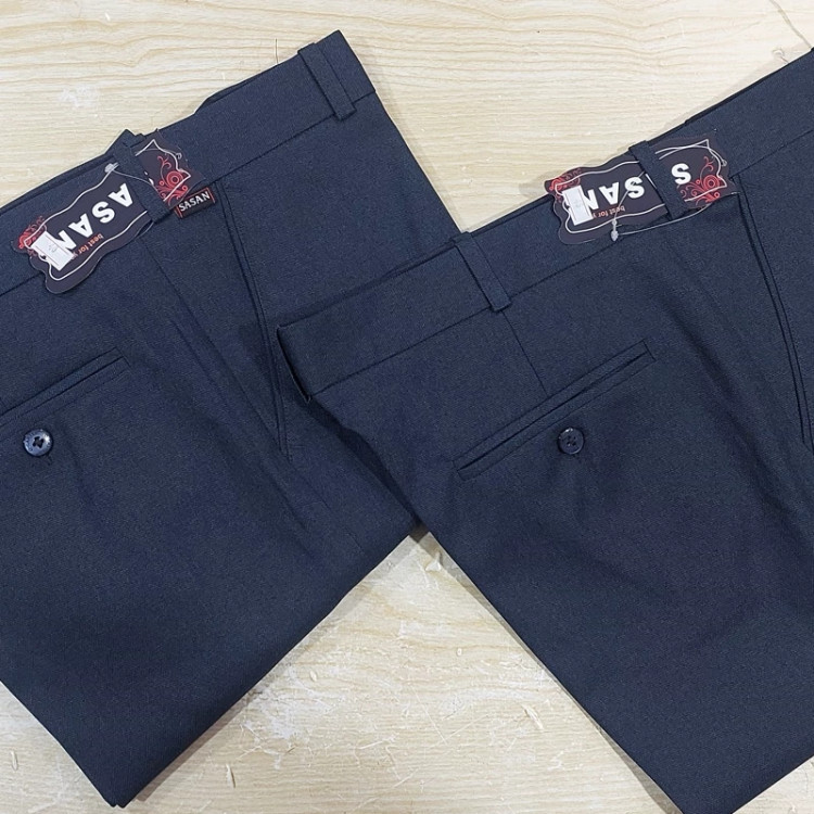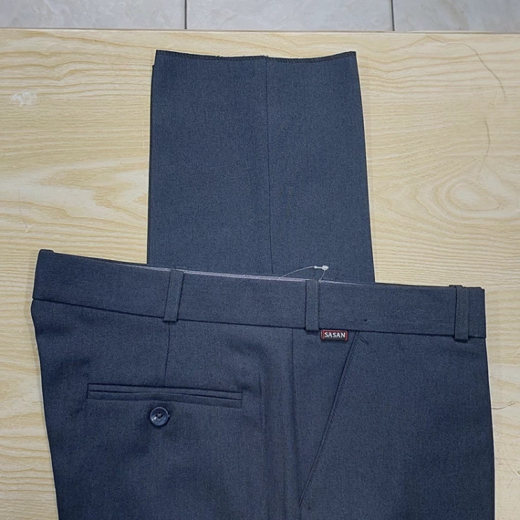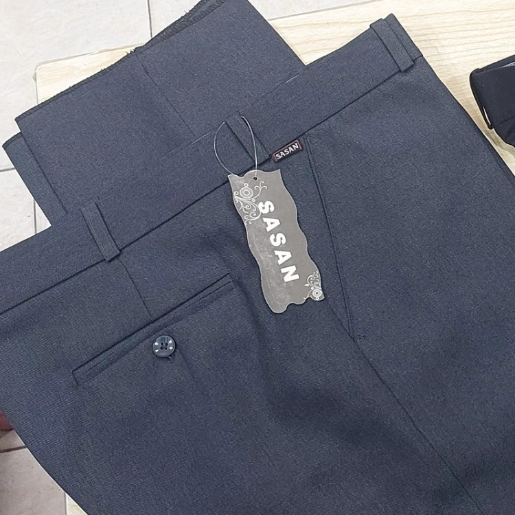 شلوار پارچه ای مردانه ایرانی آبی خاص متمایل به خاکستری ، تولید شده در تولیدی های داخلی استاندارد.