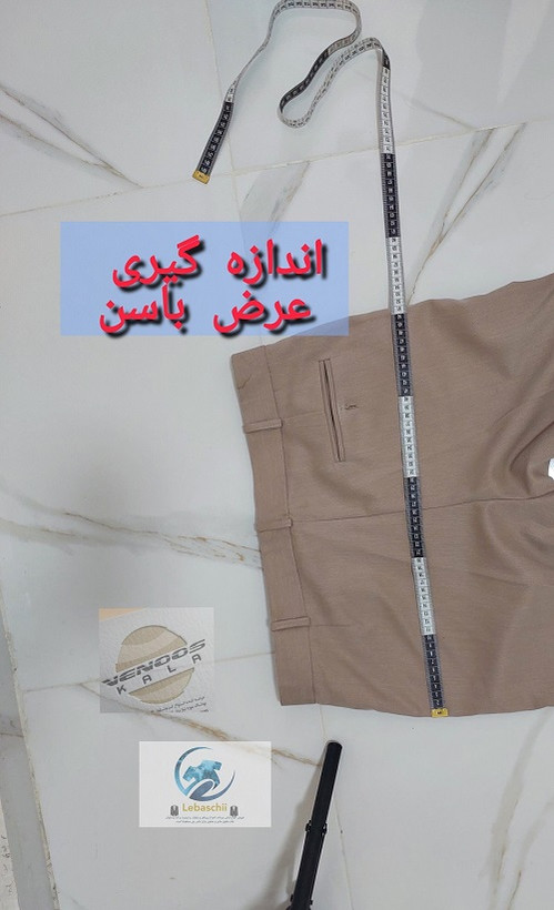 سایز ۴۰(دور تا دور کمر ۷۸ سانت و عرض کمر ۳۸ سانت و دور باسن ۸۴ سانت و فاق جلو ۳۰ سانت و فاق عقب نزدیک ۳۳ سانت و قد شلوار ۱۰۴ تا ۱۰۵ سانت و دور ران ۵۷ تا ۵۸ سانت و عرض دمپا ۱۹ سانت).