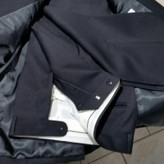 سایز 50 ( فاصله بین زیر بغل ها 51 سانت و دور ران شلوار 64 سانت و قد آستین کت 63.5 و قد شلوار 107.5 ، دمپا 22 سانت و عرض شانه 50 و دور کمر شلوار 91 تا 91.5 (شلوار 4 سانت اضافه دارد )