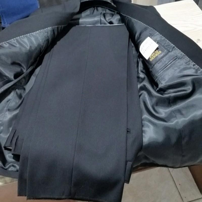سایز 50 ( فاصله بین زیر بغل ها 51 سانت و دور ران شلوار 64 سانت و قد آستین کت 63.5 و قد شلوار 107.5 ، دمپا 22 سانت و عرض شانه 50 و دور کمر شلوار 91 تا 91.5 (شلوار 4 سانت اضافه دارد )