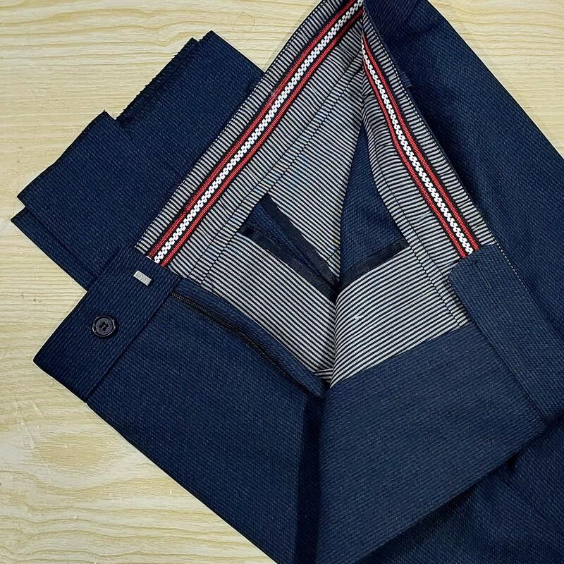 شلوار پارچه ای مردانه سرمه ای تیره با خطوط مشکی عمودی سایز 44 و 46 و 48 و 50 و 52 و 54